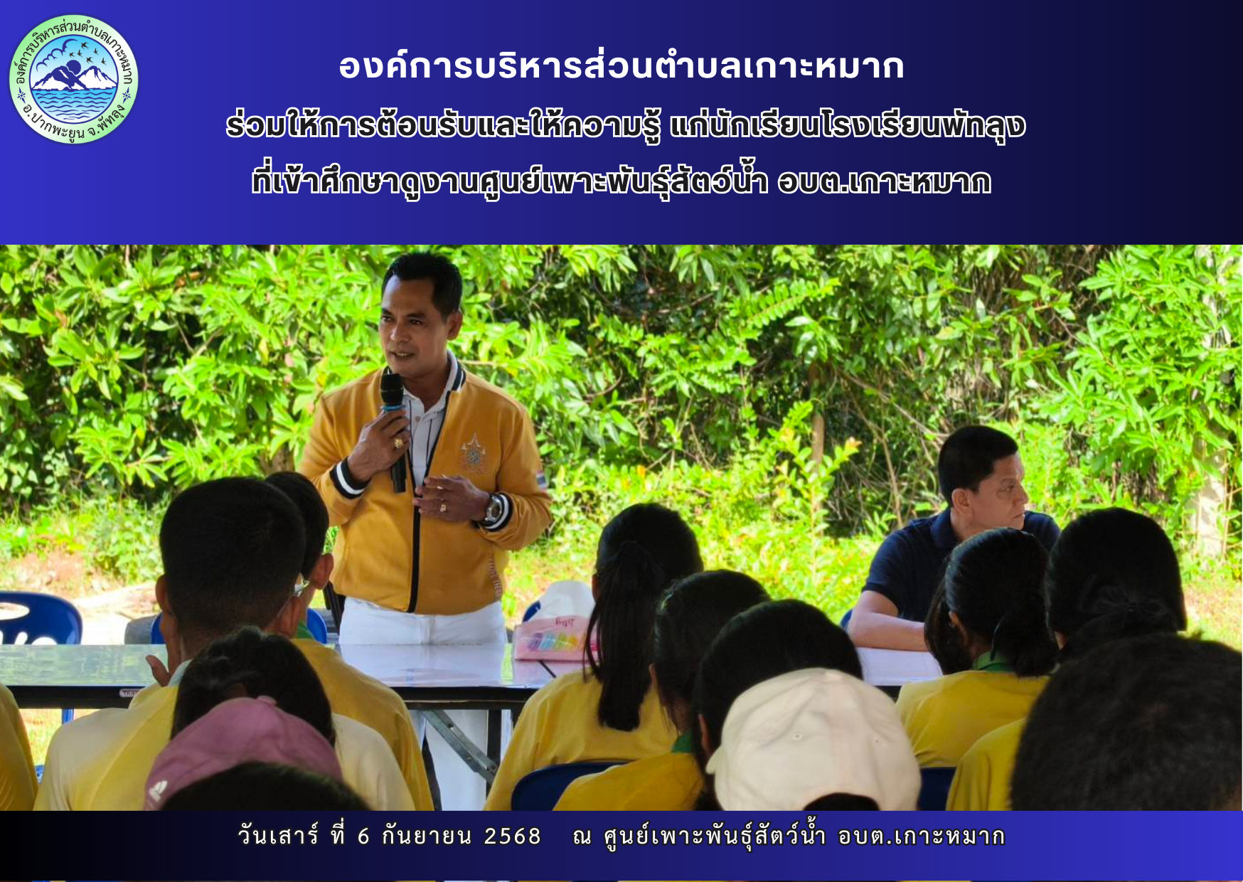 อบต.เกาะหมาก ร่วมให้การต้อนรับและให้ความรู้ ความเข้าใจรายละเอียดแก่นักเรียนโรงเรียนพัทลุงที่เข้าศึกษาดูงานศูนย์เพาะพันธุ์สัตว์น้ำองค์การบริหารส่วนตำบลเกาะหมาก