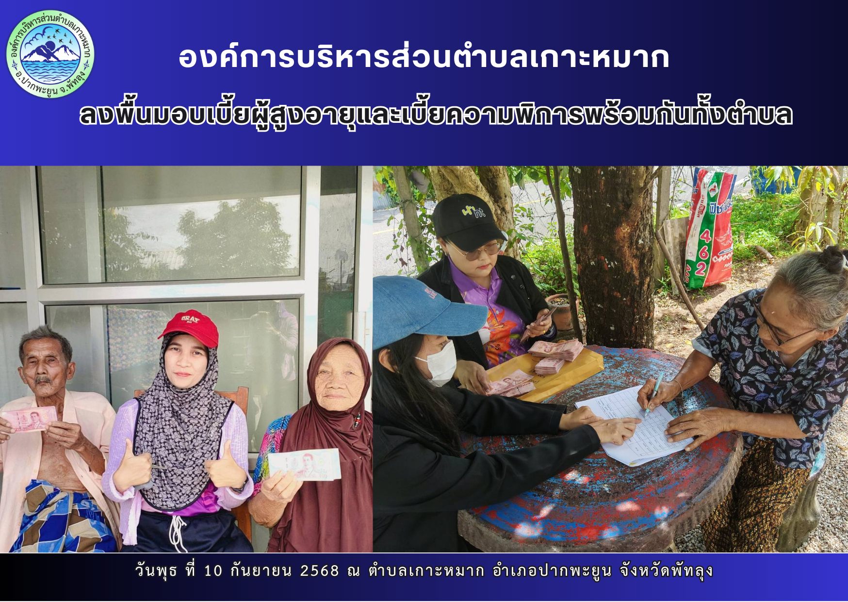 อบต.เกาะหมาก ลงพื้นมอบเบี้ยผู้สูงอายุและเบี้ยความพิการพร้อมกันทั้งตำบล ทั้งนี้นายภัคเอื้ออิชณน์ สอนสังข์ นายกองค์การบริหารส่วนตำบลเกาะหมาก