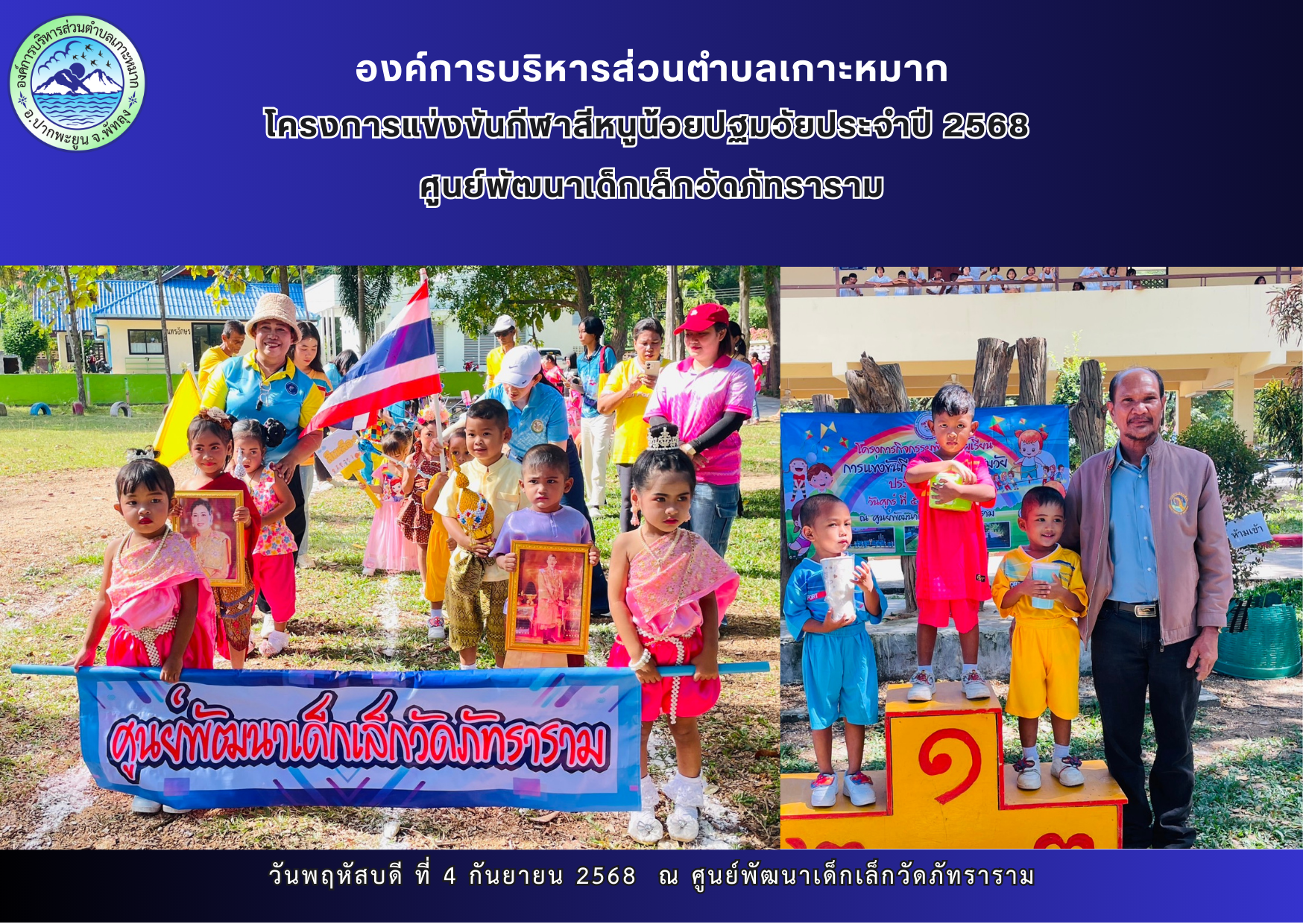 อบต.เกาะหมาก เป็นประธานเปิดโครงการแข่งขันกีฬาสีหนูน้อยปฐมวัยประจำปี 2568 ศูนย์พัฒนาเด็กเล็กวัดภัทราราม
