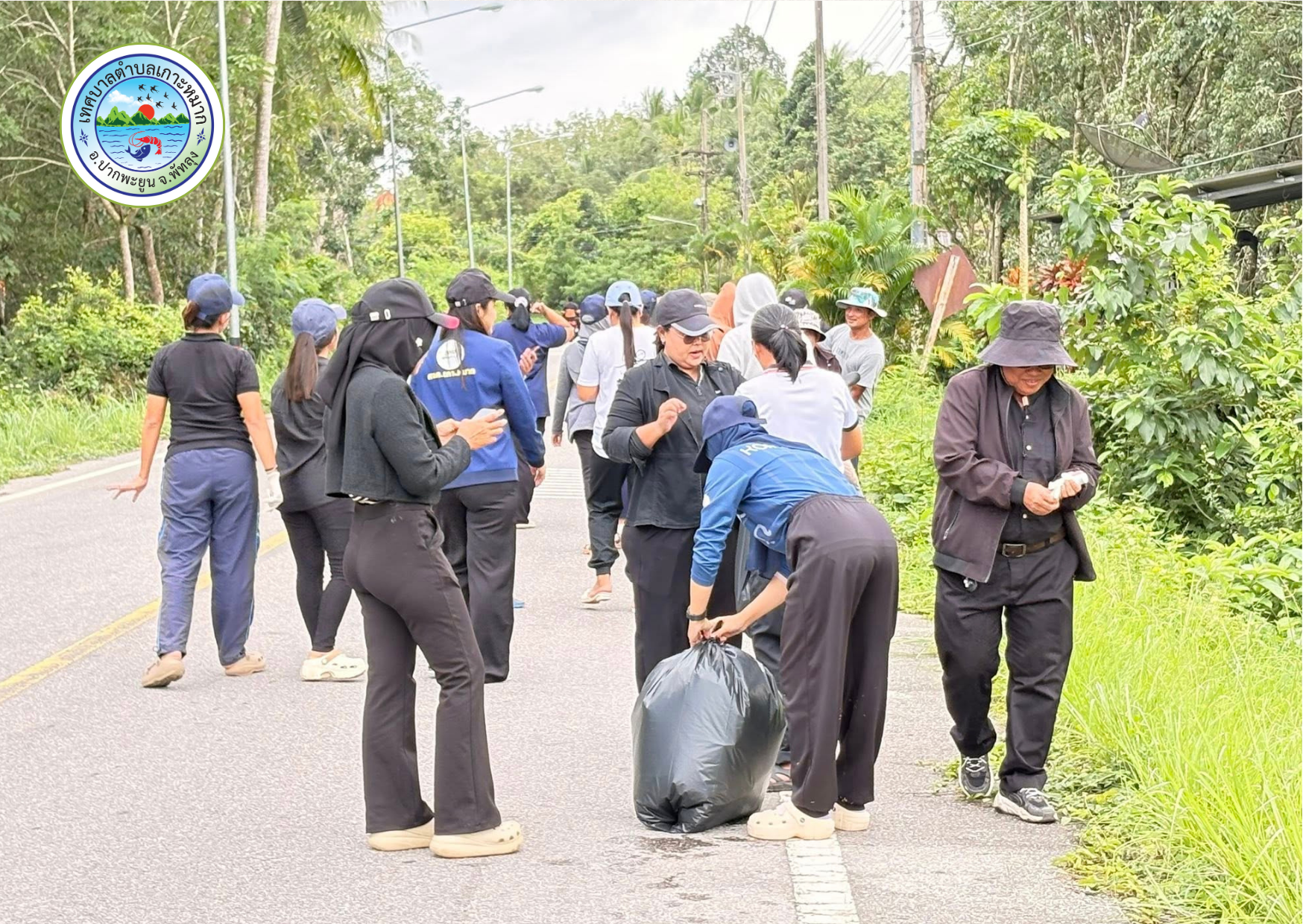 พร้อมกันลงพื้นที่เก็บขยะ หมู่ที่ 1 บ้านท่าวา ตั้งแต่หัวสะพานปากพะยูน ถึง รร.บ้านช่องฟืน ตำบลเกาะหมาก อำเภอปากพะยูน จังหวัดพัทลุง